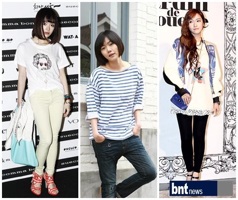 感觉T恤与牛仔裤的搭配平淡无奇,可参考Jessica的穿衣搭配。长款T恤搭配打底裤,自由奔放的感觉即刻显现出来。此外,带有强烈图印设计的T恤,还能增添活泼的风范,穿搭时可供参考。