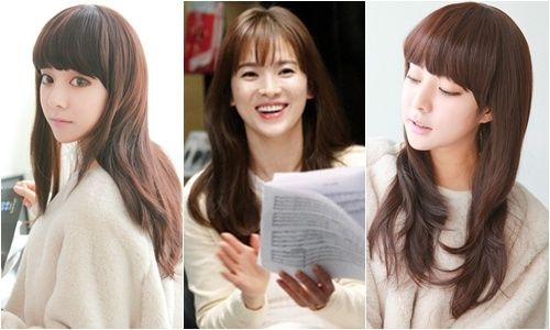另外,宋慧乔还在遮住眉毛的齐刘海上增添了蓬松范儿,不仅有了童颜魅力,还以柔和的褐色倍添了温柔的气质,如果想演绎像宋慧乔一样的齐刘海+自然C浪发型,其中最重要的一点就是演绎自然气质。