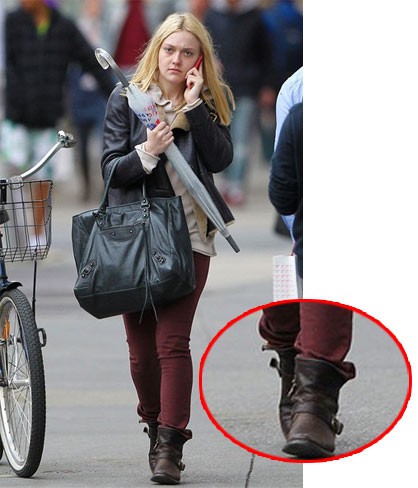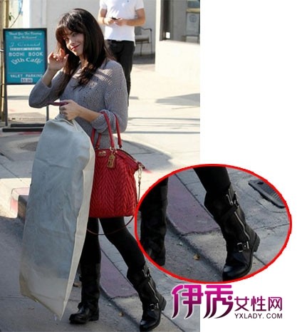 棕色短靴+深红色瘦腿裤