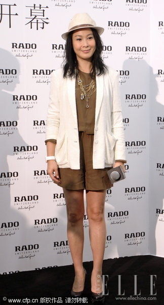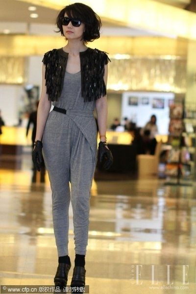 高圆圆最近的时尚气场无人能敌,晋升国内时尚icon的她,一袭紧身连体裤散发着超强的气场。黑色小坎肩相当酷。