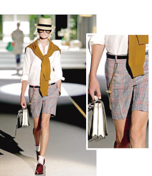 学院风的格子五分裤,透出浓浓地英伦风,就像是刚从大学校园走出来的一样,等同于减龄装扮。用复古的短袜搭配似乎是一个新的流行趋势。