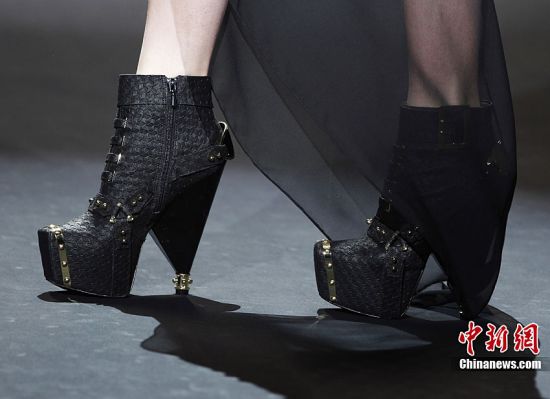 当地时间2月10日,纽约2011秋季时装周在美国纽约林肯中心正式拉开帷幕。本届时装周持续到2月17日,在这8天时间内,将会有近百位著名设计师展示其时装作品。 图为一位模特在走秀时摔倒。