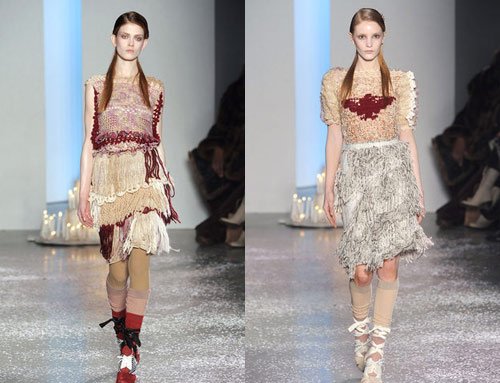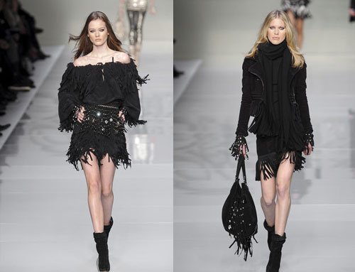 飘逸的流苏在本季大受欢迎,在即将到来的2010秋冬也将延续这种风潮。但是却摒弃一贯的柔美态度,变得更加丰富多彩,羽毛皮革针织都成为制作流苏的原材料,不可思议?