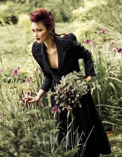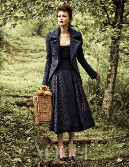 韩版最新一期的《Vogue》杂志中上演了一场田园复古的风格大片,模特身着粗呢格纹套装展现出悠闲自然的感觉。