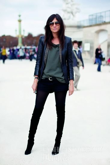皮夹克、紧身裤、高跟鞋已经成为了她的标签,出镜率超高的Emmanuelle式造型深入人心,用不着说话即可压倒一切。