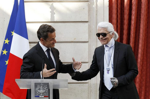 有句老话说得好:“敌不过,当求和。”于是,就在上周四,在巴黎爱丽舍宫,这位“飞快的”萨科奇先生为Karl Lagerfeld的勤劳颁发了一枚勋章(the Legion of Honor)。